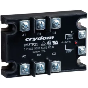 Three-phase solid-state relay with SCR output for heavy industrial loads.