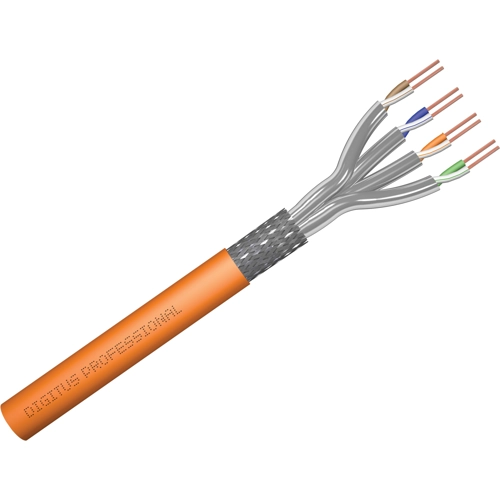The Digitus Cat 7 installation cable is designed for use in the structured data center and the building cabling according to ISO/IEC 11801, DIN EN 50288-4-1, DIN EN 50173, IEC 61156-7, EN 50288-9-1. The cable is perfectly suitable for the transmission of both analog and digital data and also supports POE and POE+. The shielding structure is composed of single shielded pairs with a tinned copper braid, which ensures excellent shielding and electrical values.