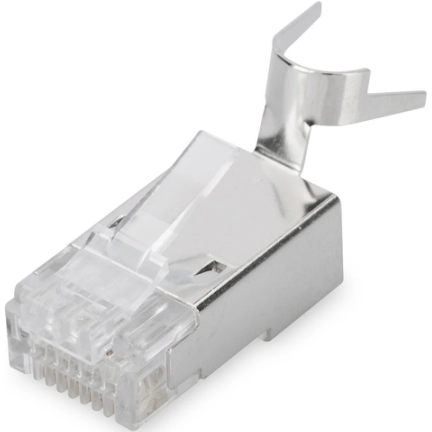 The CAT 6A modular connector for round cables, shielded, is the perfect choice for high-performance networks with data rates of up to 10 Gbit/s. Thanks to its shielded (STP) design, it reliably protects against electromagnetic interference (EMI) and ensures stable, interference-free signal transmission. The robust metal shielding makes it ideal for professional applications in data centers, offices and industrial environments. This RJ45 plug is specially designed for CAT 6A round cables and enables a reliable and long-lasting connection.