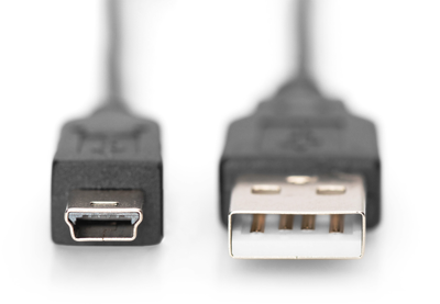 The DB-300130-010-S is a USB 2.0 connection cable for connection of external USB end devices with Mini B (5-pin) jack, e.g. digital cameras, action camera, external hard drives, gaming consoles and navigation devices or printers to the USB host (e.g. PC, notebook or USB hub). Thanks to the USB High-Speed standard, rapid synchronization is provided with a data transfer rate of up to 480 Mbit/s. Also thanks to a length of 1m, you can connect external USB components to your computer conveniently.