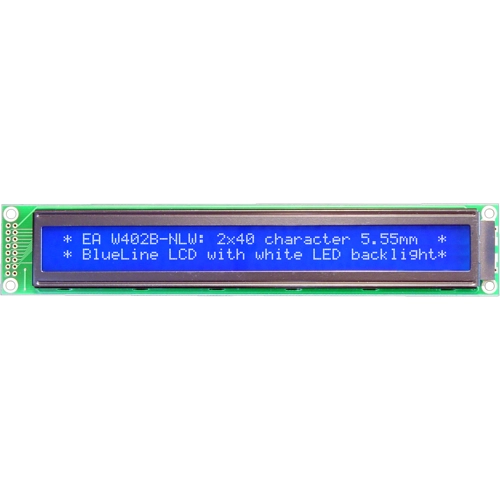 LCD text display, 2 x 40 character, viewing area: 154.5 x 16.5 mm, EA W402-NLED