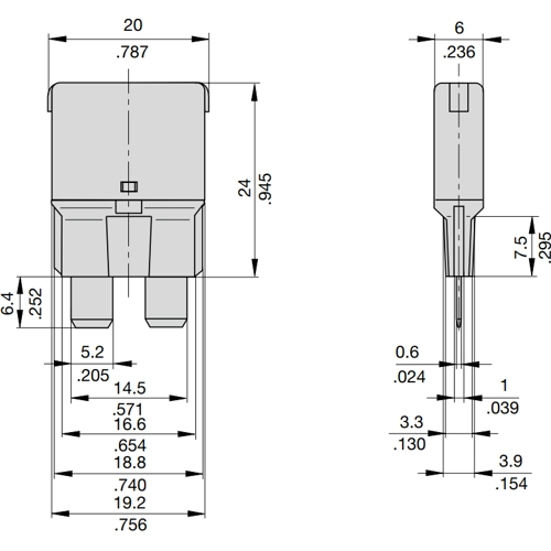 Miniaturized single-pole, cyclically tripping thermal circuit breaker with automatic reset designed for installation in automotive fuse blocks. Extends the benefits of circuit breaker performance and convenience to applications which are cost critical.