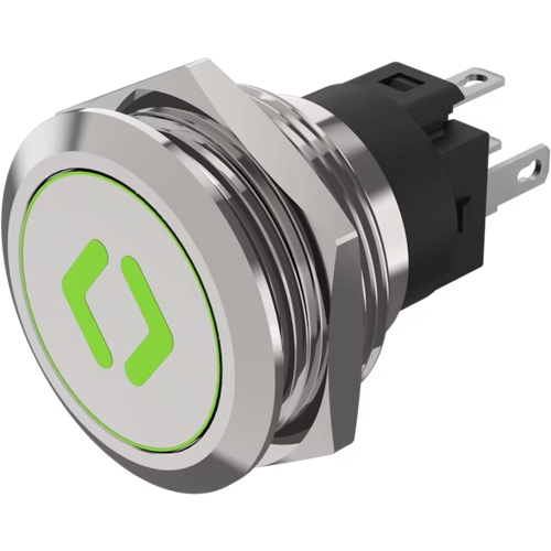 Illuminated pushbutton Ø 22 mm stainless steel 304, with symbol, Momentary, 24 V DC, 1 C, Soldering terminal, 2.8 x 0.5 mm, round, Stainless steel, Red/Green, Door open, Silver.
