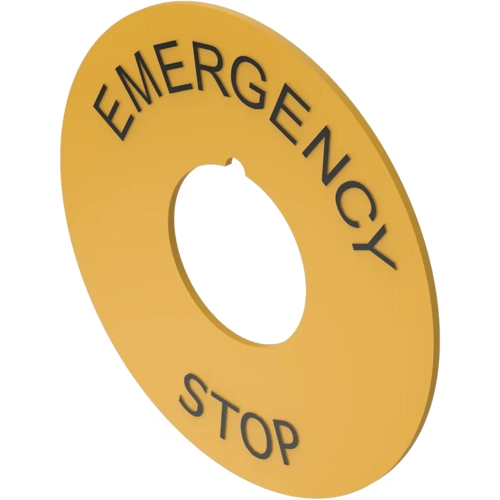 Legend plate, Ø 43 mm, Plastic, EMERGENCY STOP, Yellow.