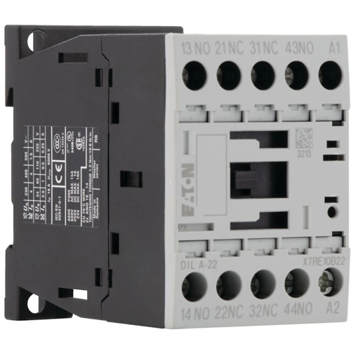 A 24 V DC contactor relay featuring two normally open (N/O) and two normally closed (NC) contacts, equipped with screw terminals for DC operation.