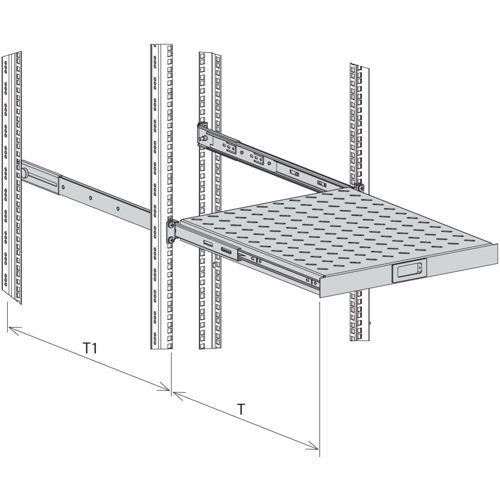 The 691651AGR.10 is a 1U Pull-Out shelf for use in all 19" network and server cabinets. Fixing at the front and rear-sided 19" profiles necessary and mounting depth rear-sided adjustable (+0 - 100 mm).
