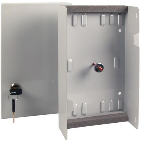 Housing, lockable with hinged lid, gray, wall mounting, for max. 4 splice cassettes or 1 splice cassette plus one distributor plate, 53603.1