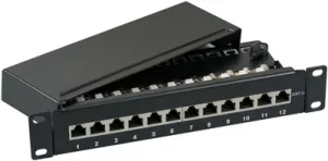 Patch panel, 12 x RJ45, horizontal, 1 row, (W x H x D) 254.6 x 44 x 108 mm, gray, 37735.12