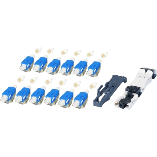The 53199.1 is a 12er OS2 blue set field installable SC connectors with fiber holder. This product is compatible with all standard LC connectors and adapter.