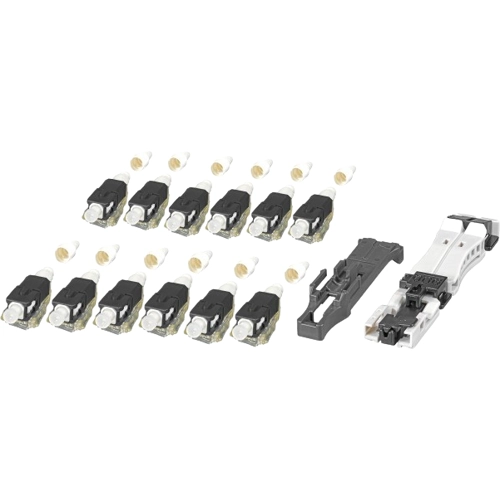 The 53201.1 is a 12er OM2 black set field installable SC connectors with fiber holder. This product is compatible with all standard LC connectors and adapter.