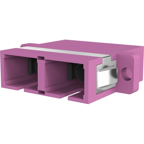 Adapter SC Duplex OM4, one piece, erica violet, ceramic sleeve, with plastic housing.