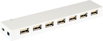 This desktop 7-port USB 2.0 hub comes with a power supply for efficient connectivity and charging.