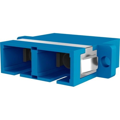 SC Duplex couplings in coloured plastic housing. Mounting options via clips, also via sheet metal or threaded screws - these are available as accessories.
