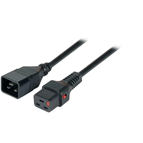 The EK607SW.3 is a extension cable with „IEC Lock“ prevents accidentally removing of the C19 jack from devices. After connecting, the C19 jack only can be released after sliding back the red latch.