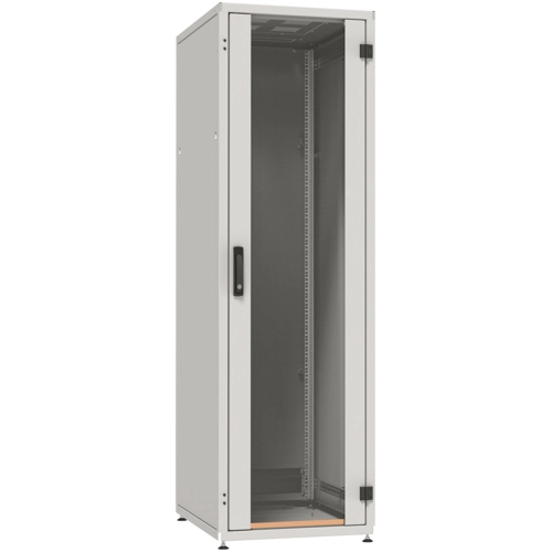 The PRO-3366GR.G1SV is a network cabinet according to DIN41494. It has a steel sheet housing with screwed frame, completely pre-assembled, self-ventilated, dismountables.