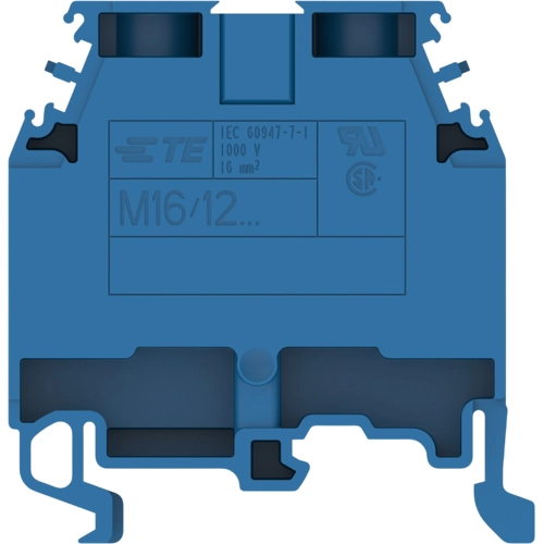 Screw Clamp Terminal Block, Feed-Through, Blue, 12 mm Spacing, 2 Position, Screw Terminal, Signal, DIN Rail, 1000 VAC, 6 AWG, ENTRELEC SNA.