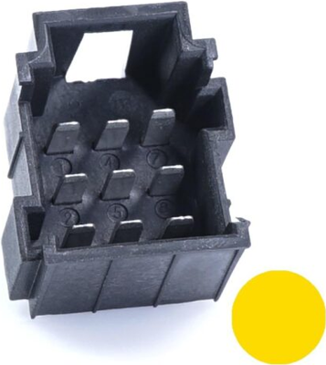 JPT connector strip, 9-pin (3x3), Press‑Fit Technology (PFT), yellow.