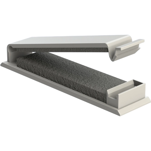 Flat cable holder with foam insert for routing fibre optic cables without damaging the cable.