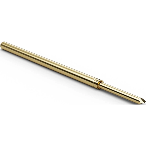 Technical attributes (type, plunger with tip design, tip diameter TD, material, finish (LG is long-life gold for particularly long endurance)): F100.38S090L200, probe with plunger tip 38, TD 0.9 mm, steel, long-life gold.
