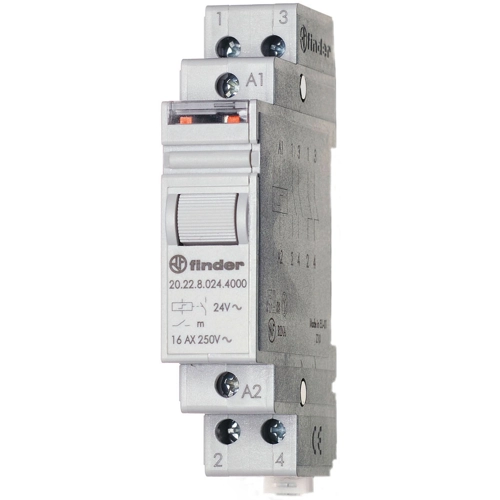 Modular step relay, 16A, with 1 NO single-pole contacts, 2-step. For direct mounting on 35mm rail (EN 60715). One module width 17.4 mm, Test button and mechanical indicator, AC or DC coil.