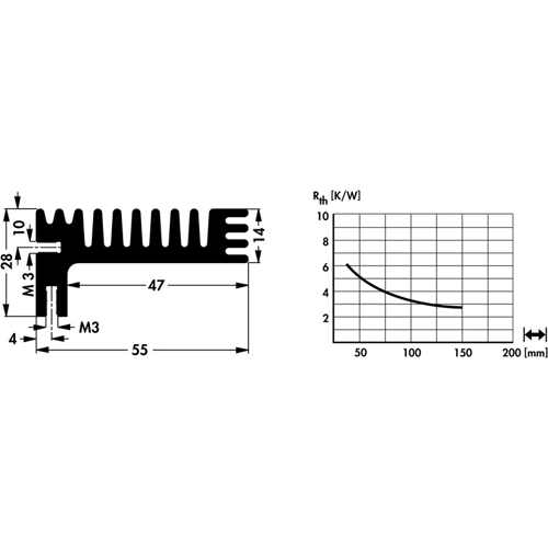 Extruded heatsink, (L x W x H) 84 x 55 x 28 mm, 6.2 to 2.8 K/W, black anodized, 10022759