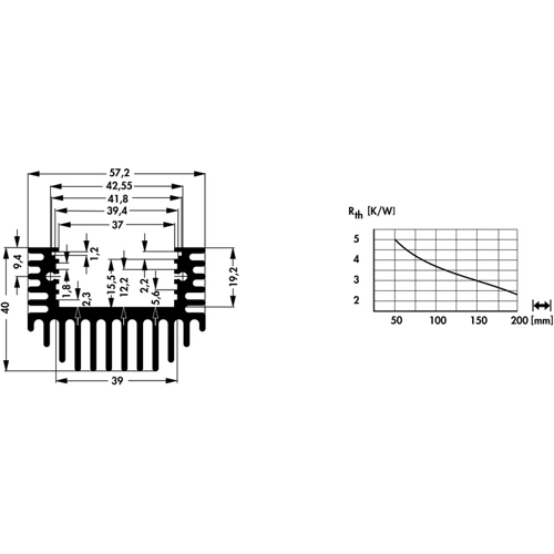 LED heatsink, (L x W x H) 100 x 57.2 x 40 mm, 7 to 2.3 K/W, black anodized, 10046092