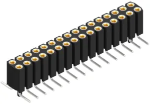 Female socket for 0.635 mm and up to 0.85 mm Ø. No capilliary action when soldering due to protected contact insert.