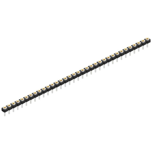 Socket header, low profile, less than 2.7/3.1 mm above PCB, with contact spring for Ø 0.5 mm pins, solder and plug pin Ø 0.76 mm.