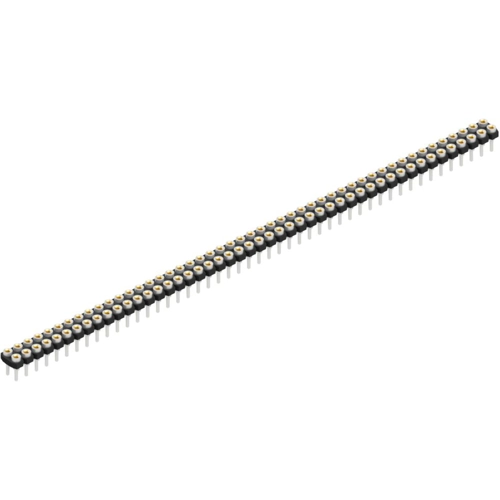 Socket header, low profile, less than 2.7/3.1 mm above PCB, with contact spring for Ø 0.5 mm pins, solder and plug pin Ø 0.76 mm.