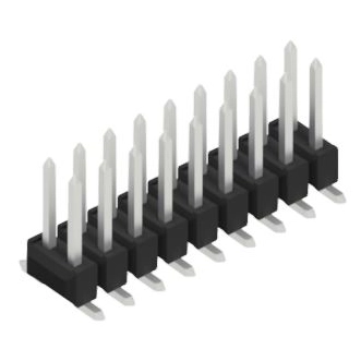 Pin header, 18 pole, pitch 2.54 mm, angled, black, 10049468