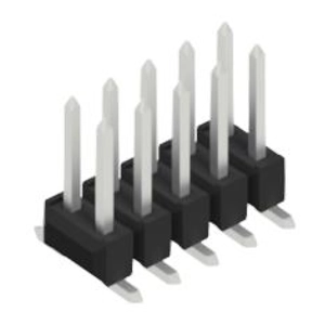 2.54 mm grid, for surface mounting, single and dual row, with 0.635 x 0.635 mm square pins; Rated current: 3.0 A. Rated voltage: 250 VAC. Test voltage: 2000 V. Insulator: PA 4.6 GF. Inflammability class: UL 94 V-0. Insulation resistance: at least 1000 Gohm. Contact material: CuSn alloy. Contact finish: 0.2 µm gold on nickel primer. Contact resistance: max. 5.0 Mohm. Operating temperatures: –40 to +163 °C (briefly up to +260 °C).