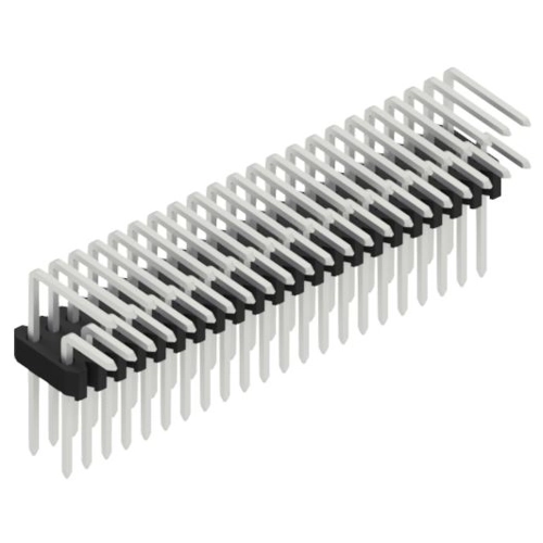 Standard pin header, suitable for female header BLM, pitch 1.27 x 2.54 mm.