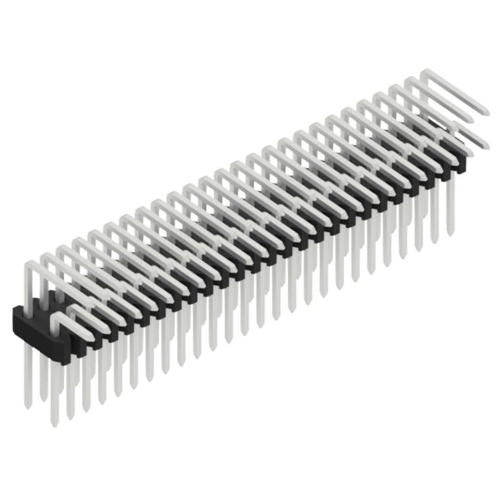 Standard pin header, suitable for female header BLM, pitch 1.27 x 2.54 mm.