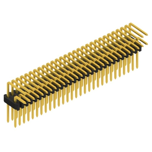 Standard pin header, suitable for female header BLM, pitch 1.27 x 2.54 mm.