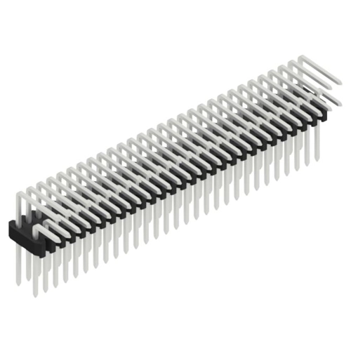 Standard pin header, suitable for female header BLM, pitch 1.27 x 2.54 mm.