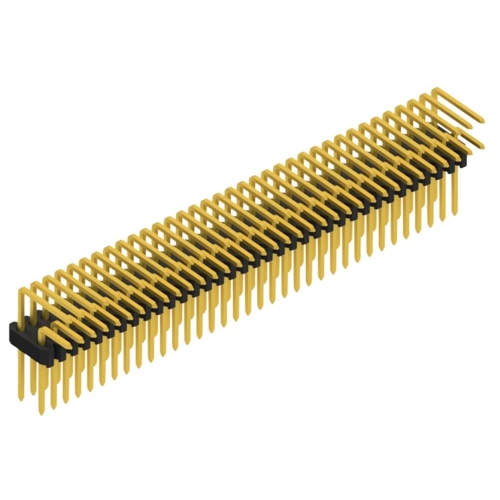 Standard pin header, suitable for female header BLM, pitch 1.27 x 2.54 mm.