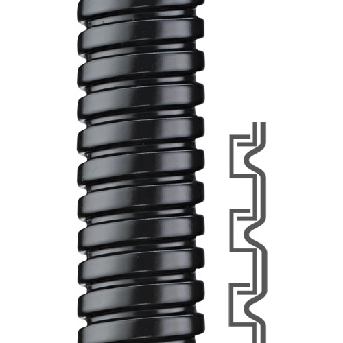 Protective metal conduit, strip-wound, s profile and PVC sheathing.
