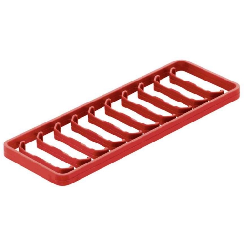 The 09100009901 is a red polyamide coding element with 10 pieces per frame.