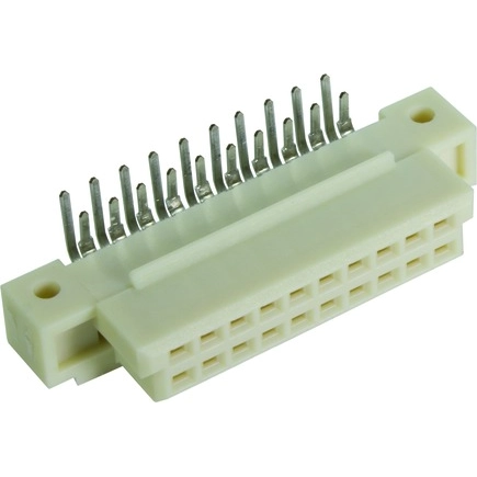 Female connector, Reflow soldering termination (THR), Rated current: 2 A, Contacts: 20, Angled, Copper alloy, Noble metal over Ni Mating side, Sn over Ni Termination side, Performance level: 2, acc. to IEC 60603-2, Coding: Coding with loss of contacts, PCB fixing: With fixing flange, Thermoplastic resin, glass-fibre filled, Beige
