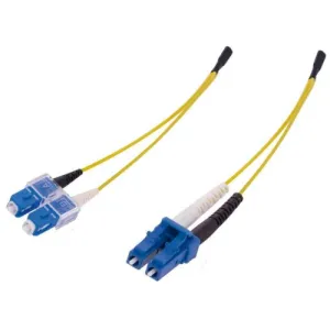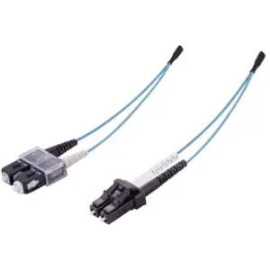 Fiber optic cable, pre-assembled on both sides, SC duplex to LC duplex, cable diameter: 5.17 mm, cable length: 1 m.