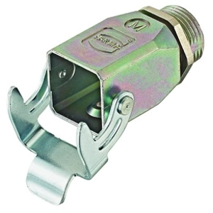 Hood with single locking lever and top entry, material: zinc die-cast, uncoated.