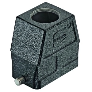 Hood with single locking lever and top entry, material: aluminium die-cast, powder-coated.
