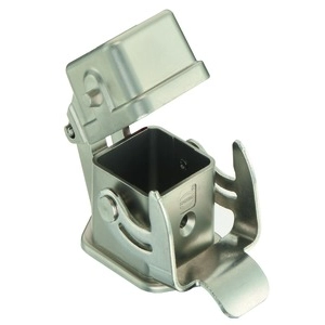 Bulkhead mounted housing with metal cover, seal and single locking lever, material: stainless steel, uncoated.