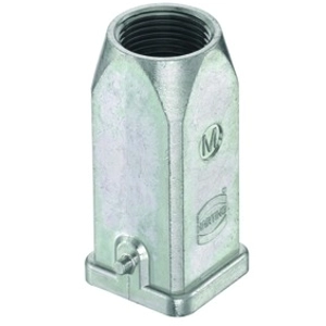 Hood with glued seal, single locking lever and top entry, material: zinc die-cast, uncoated.