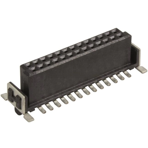 Female connector, Reflow soldering termination (SMT), Contacts: 64, Straight, Copper alloy, Noble metal over Ni Mating side, Sn over Ni Termination side, Performance level: 1, Liquid crystal polymer (LCP)