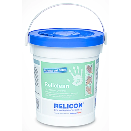 RELICON Reliclean is an antibacterial, re-greasing and quick-drying hand cleaning cloth. Ideal for cleaning heavily soiled hands, tools and equipment. Removes e.g. polyurethane, greases, oils, adhesives, tar, wax, soot, ink, sealants, paints, brake and carbon dust.