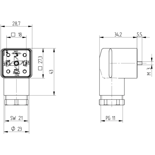 Valve connector, DIN shape A, 3 pole + PE, 230 V, 0.25-1.5 mm², 17394