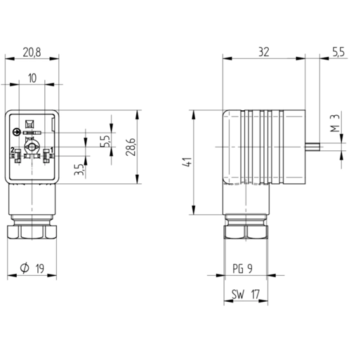 Valve connector, GMNL 209 NJ GB1 schwarz, Hirschmann Automation and Control