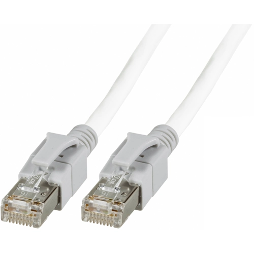 With illuminated plugs for tracing the cable path; Plugs: 2 x RJ45, 360°, shielded, with molded anti-kink bushing with latch protection. Wiring: 1 to 1. Cable: 4 x 2 x AWG 27, twisted pair. Overall shielding: braid. Twisted pair shielding: foil. Outer insulation: FRNC. Note: the detectors listed below are used in both RJ45 plugs to excite the LEDs in order to ensure the reliable identification of the patching.