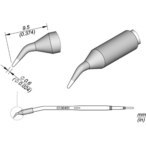 Soldering tip, conical, Ø 0.6 mm, C130401